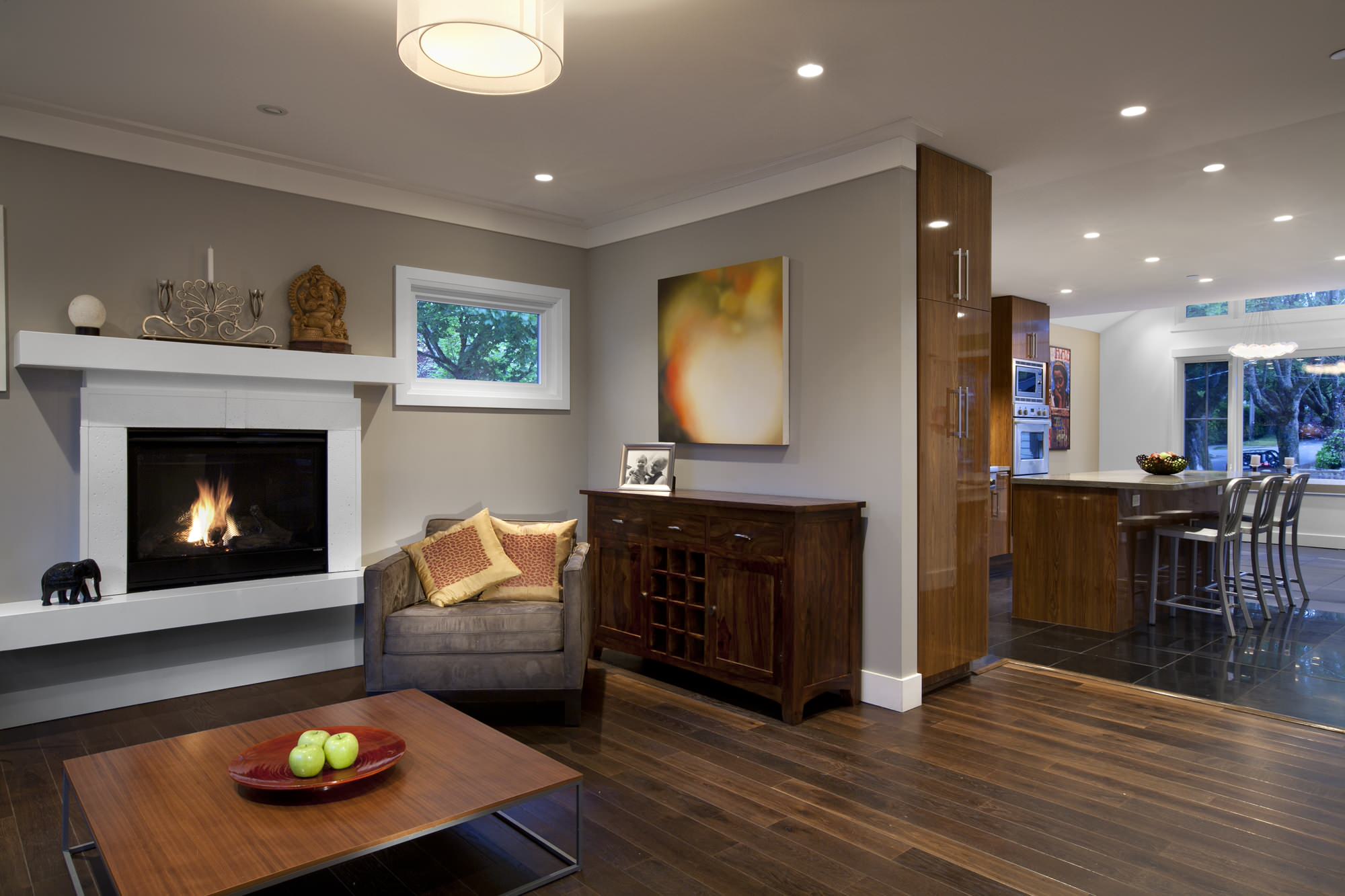 In this case, use crown in the living room and all attached areas.